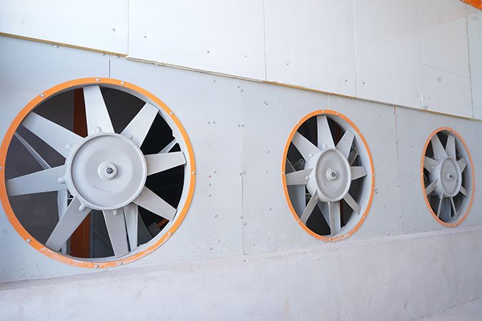 The impellers are housed within a durable mild steel (MS) casing and are directly coupled to the drive motors for efficient power transmission. Crafted from high-grade aluminum alloy through precision die-casting, these impellers are specifically engineered to deliver high static pressure and optimal aerodynamic performance