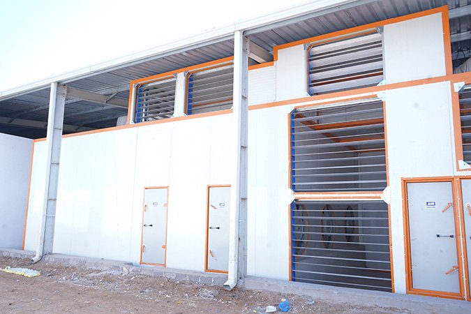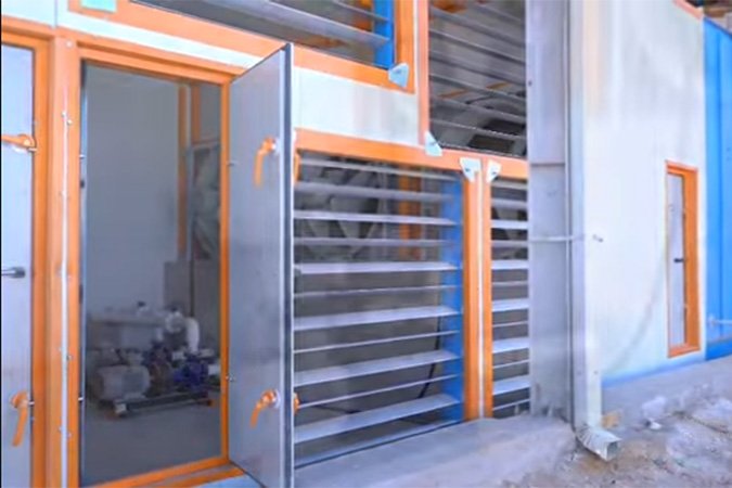 The humidification system is housed within a prefabricated structure comprising hot-dip galvanized mild steel (MS) tubing for enhanced corrosion resistance and durability.